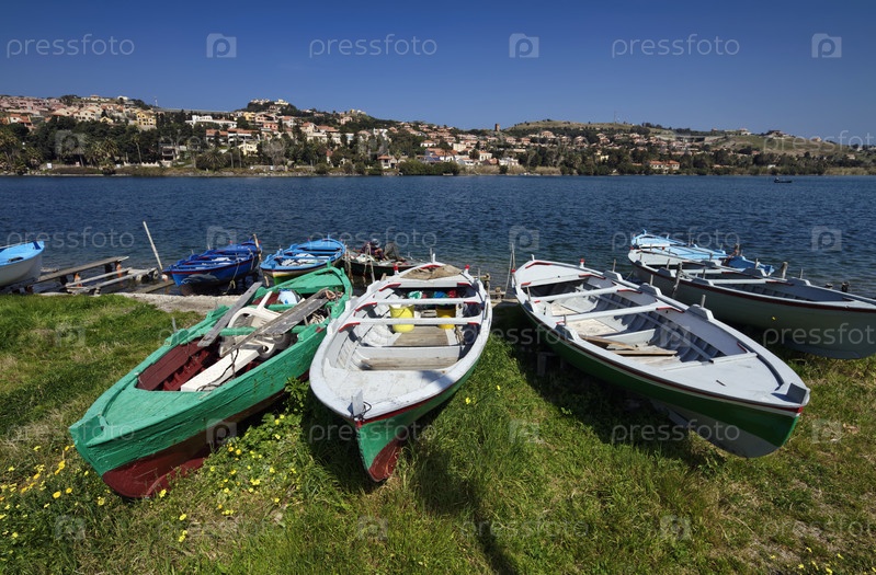 Италия, Сицилия, Мессина, озеро Ганцирри, рыбацкие лодки