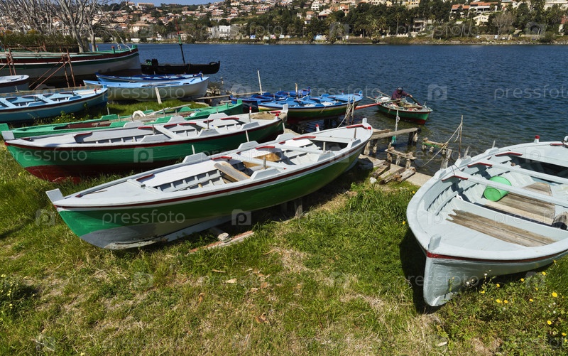 Италия, Сицилия, Мессина, озеро Ганцирри, рыбацкие лодки
