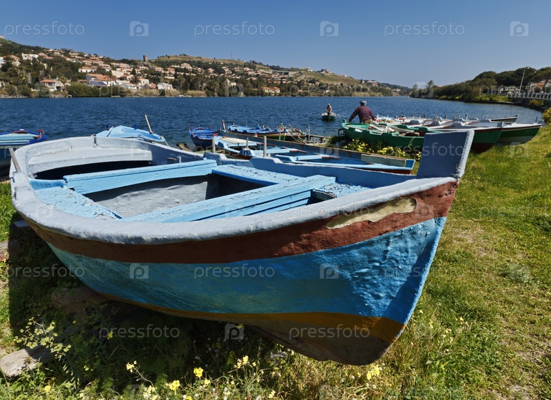 Италия, Сицилия, Мессина, озеро Ганцирри, рыболовные суда и рыбаки