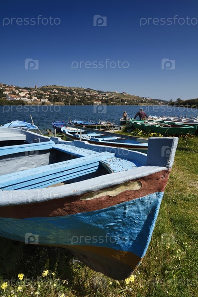 Италия, Сицилия, Мессина, озеро Ганцирри, рыболовные суда и рыбаки