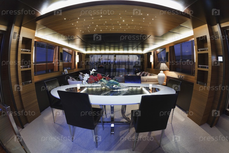 Италия, Тоскана, Виареджо, столовая роскошной яхты Текномар Велвет 100'