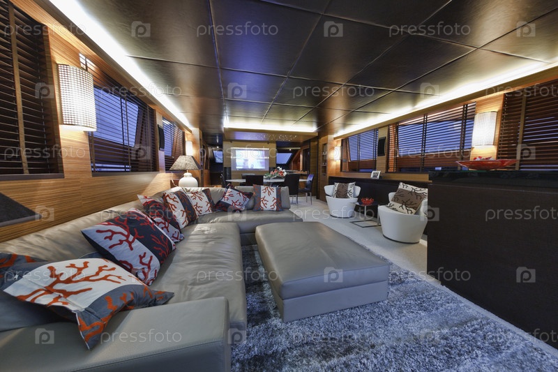 Италия, Тоскана, Виареджо, столовая роскошной яхты Текномар Велвет 100'