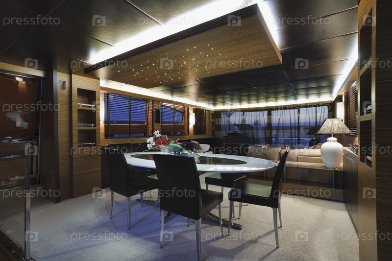 Италия, Тоскана, Виареджо, столовая роскошной яхты Текномар Велвет 100'