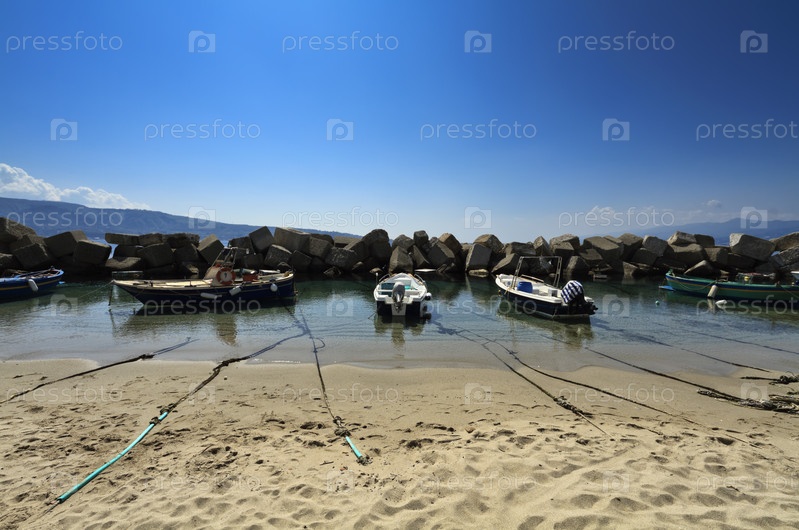 Италия, Сицилия, Мессина, Торре Фару, Сицилийский пролив, рыбацкие лодки на пляже