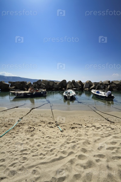 Италия, Сицилия, Мессина, Торре Фару, Сицилийский пролив, рыбацкие лодки на пляже