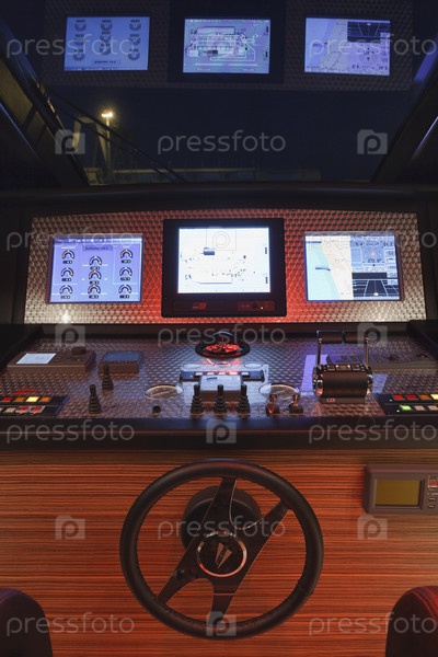 Италия, Тоскана, Виареджо, приборная панель роскошной яхты Текномар Велвет 100'