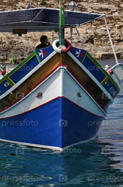 Остров Мальта, типичная рыбацкая лодка в голубой лагуне Комино
