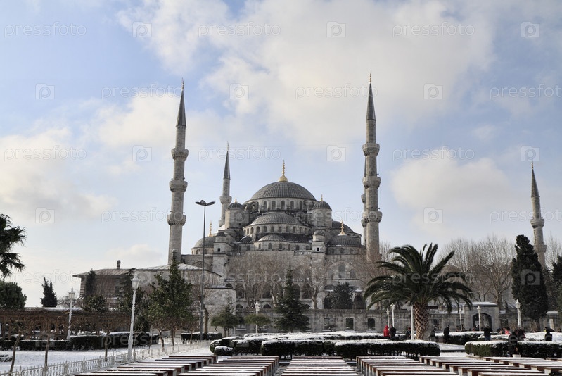 Стамбул, Турция Императорская мечеть Султанахмета, также известная как Голубая Мечеть, построена в XVII веке по проекту архитектора Мехмеда