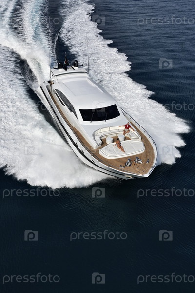 Италия, Тоскана, Виареджо, роскошная яхта Текномар Велвет 100', вид сверху