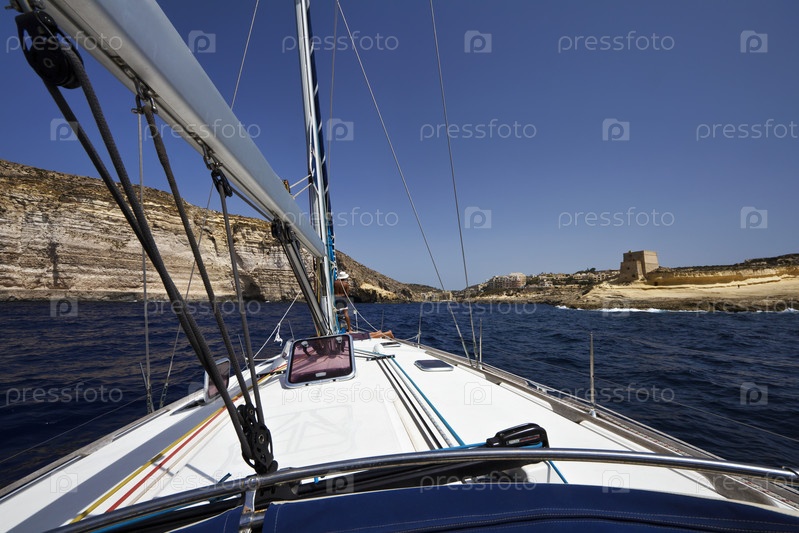 Мальта, остров Гозо, вид южных скалистых берегов острова и залива Шленди с яхты