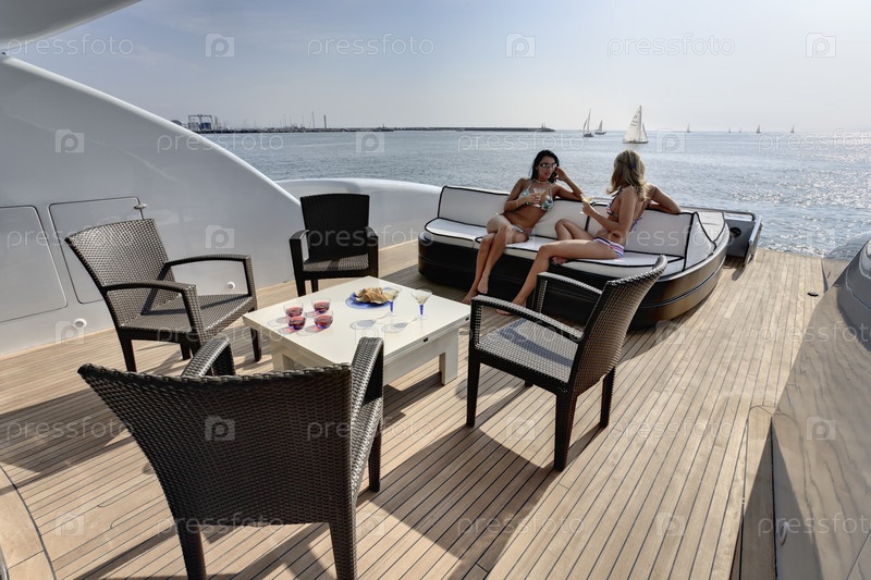 Италия, Тоскана, Виареджо, палуба на корме роскошной яхты Текномар Велвет 90'