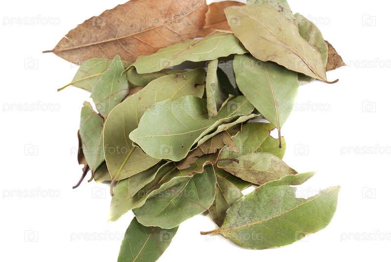 Сухие лавровые листы на белом фоне
