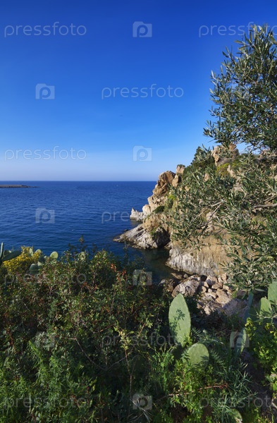 Италия, Сицилия, Чефалу, Тирренское море, скалистое побережье вблизи города