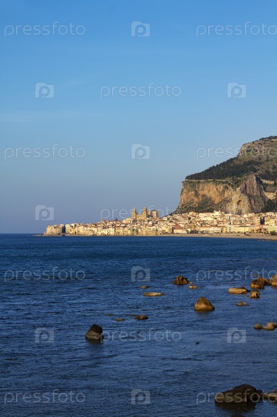 Италия, Сицилия, Чефалу, город на закате