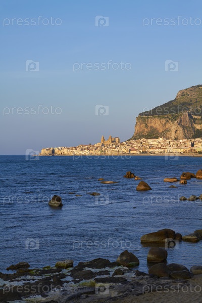 Италия, Сицилия, Чефалу, вид на город на закате