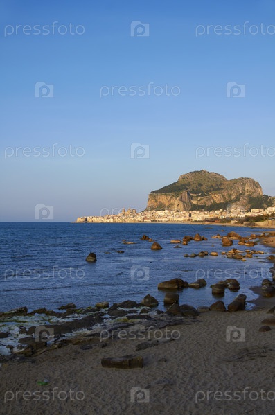 Италия, Сицилия, Чефалу, вид на город на закате