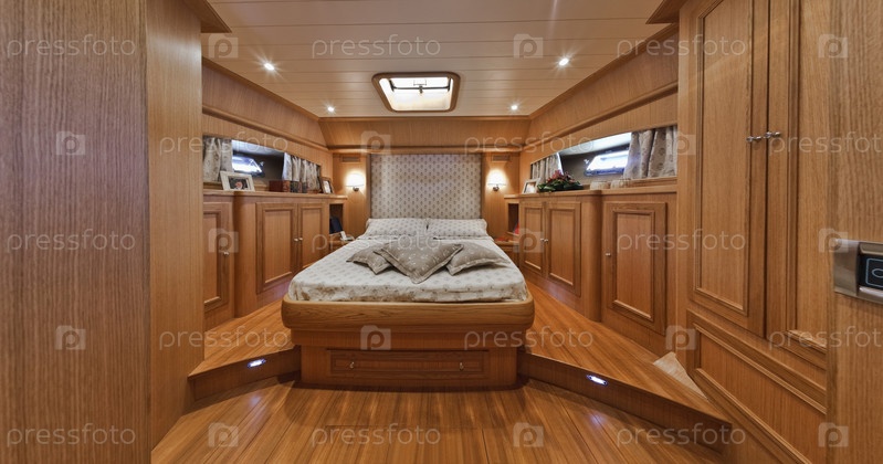 Италия, Лацио, Фьюмичино, река Тевере, роскошная яхта Морган 70', спальня