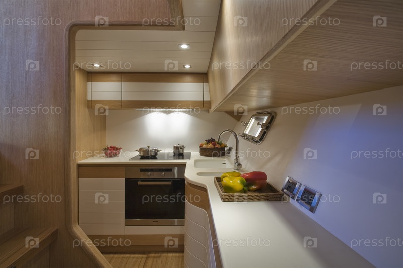 Италия, Лацио, Фьюмичино, роскошная яхта Морган 70' в стиле лодки для ловли омаров, кухня