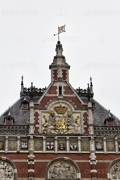 Голландия, Амстердам, вид на фасад центрального железнодорожного вокзала