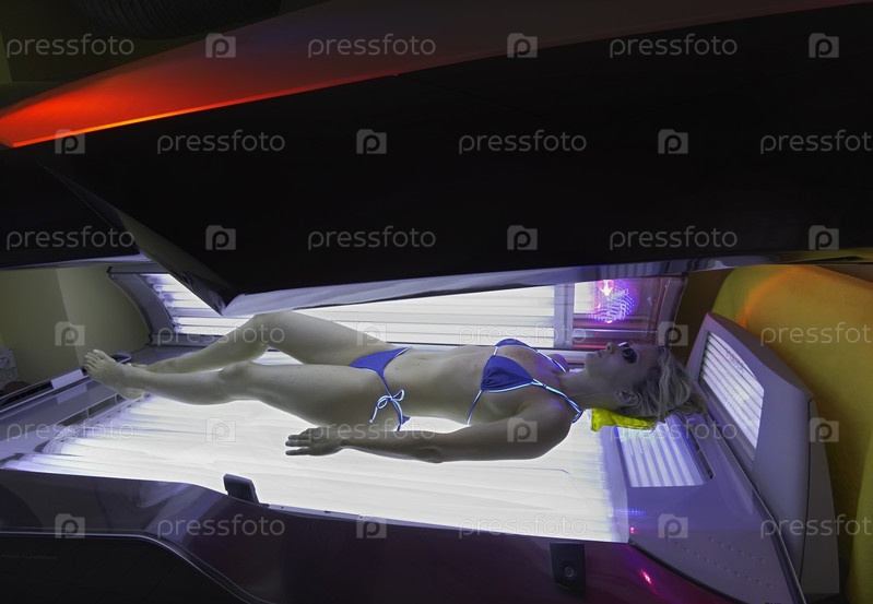 Италия, Рим, женщина загорает в солярии в фитнес-центре