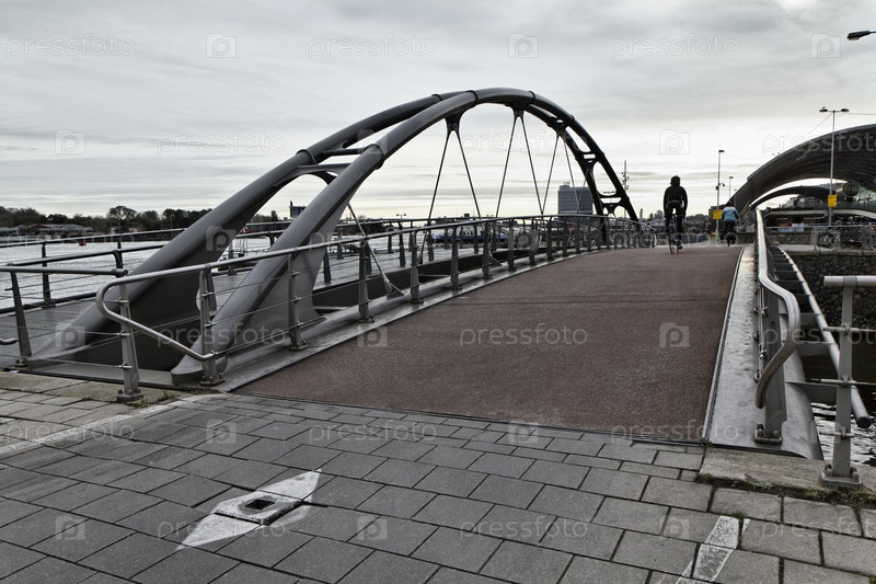 Голландия, Амстердам, велосипедисты на мосту возле центрального железнодорожного вокзала