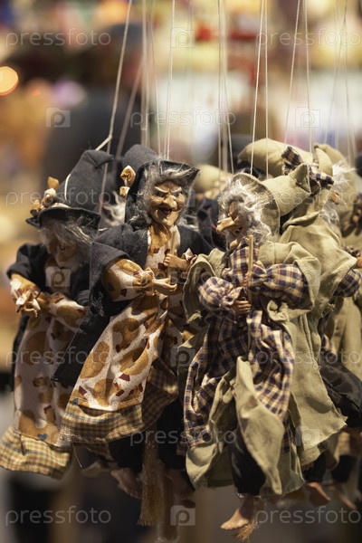 Италия, Лацио, Рим, площадь Навона, куклы ведьмы на витрине