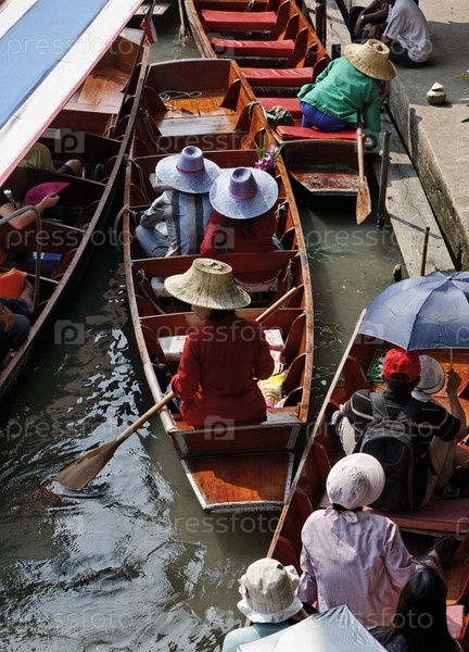 Таиланд, Бангкок, деревянные тайские лодки на Плавучем рынке