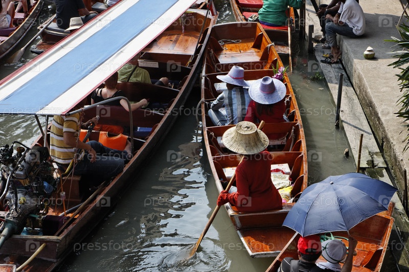 Таиланд, Бангкок, деревянные тайские лодки на Плавучем рынке