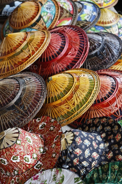 Таиланд, Бангкок, Плавучий рынок, тайские шляпы продаются на лодке
