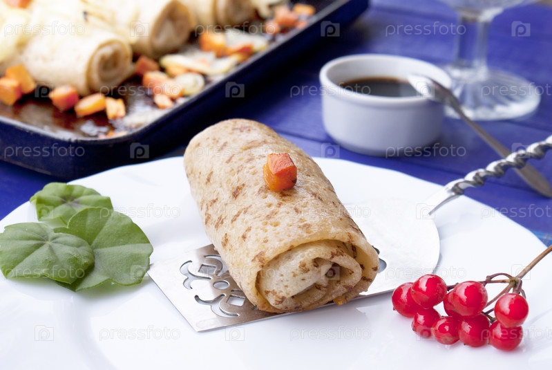 Аппетитные печеные блинчики с мясом и тушеными овощами