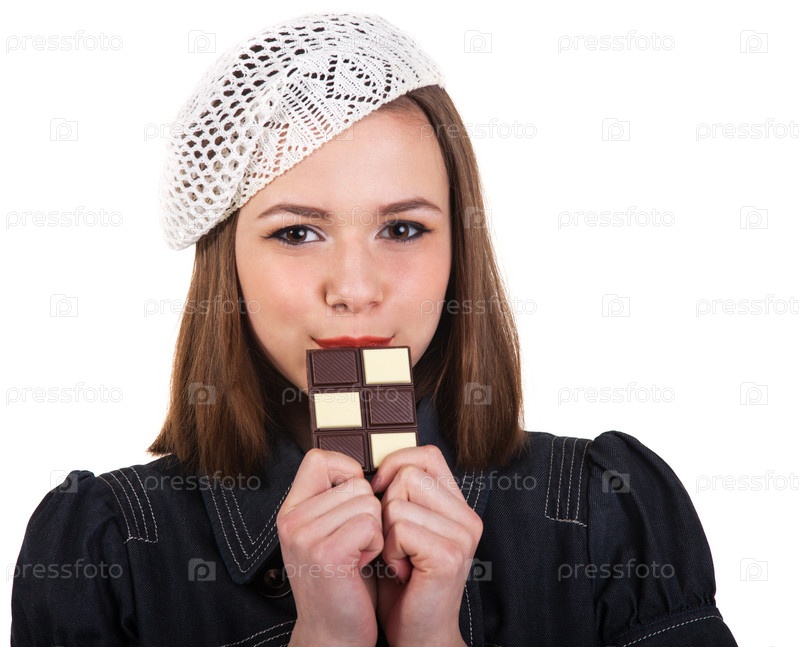 Милая брюнетка с шоколадом