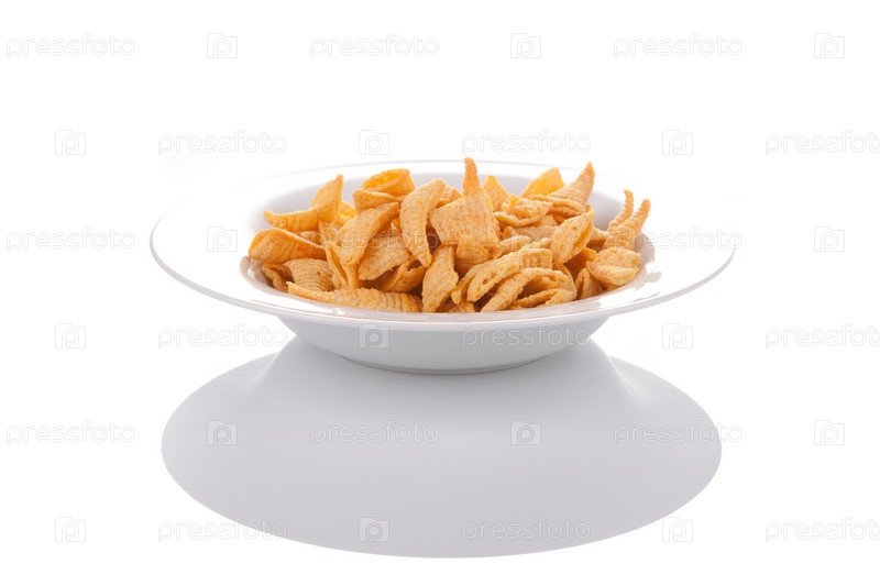 Картофельные чипсы на тарелке, изолированные на белом