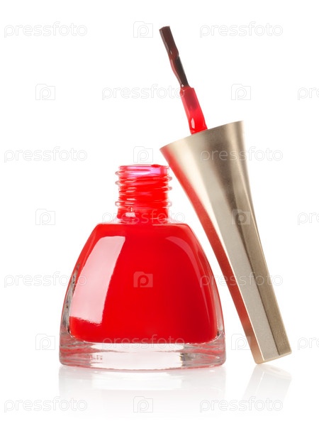Красный лак для ногтей и кисть, изолированные на белом фоне