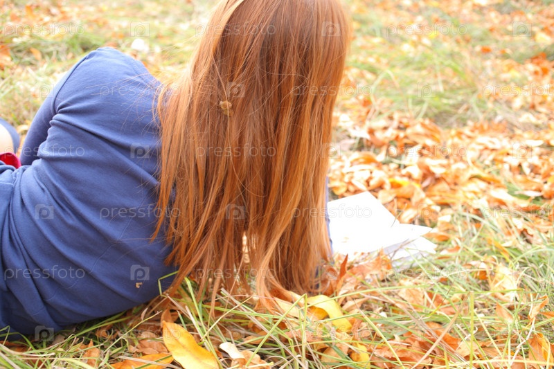Молодая женщина лежит на опавшей листве