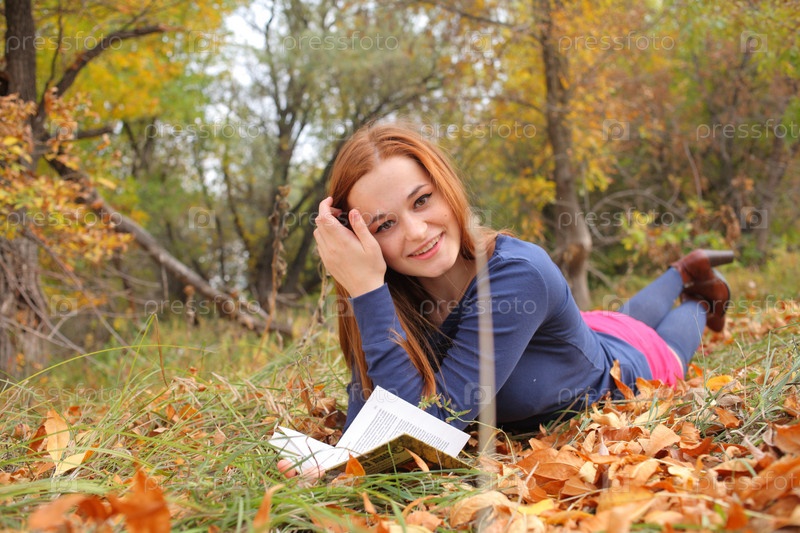 Молодая женщина лежит на опавших листьях