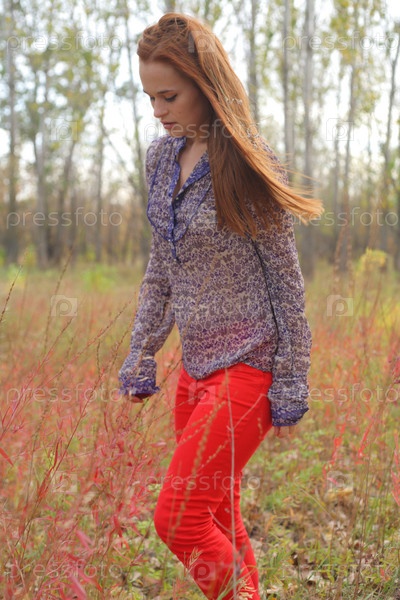 Женщина в осенней траве