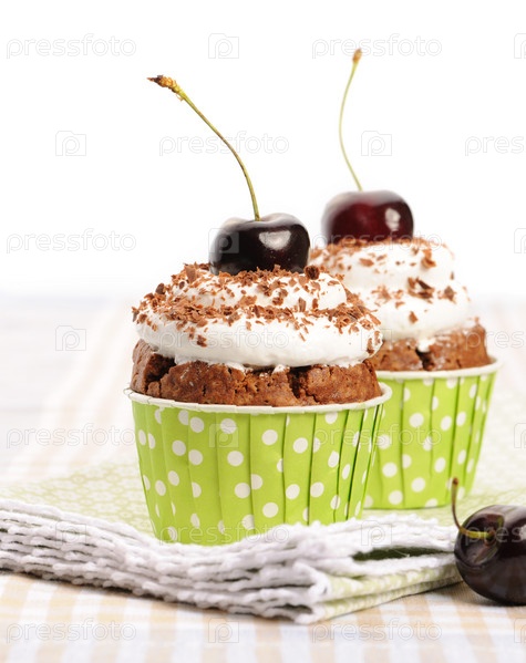 Кексы со взбитыми сливками и вишней