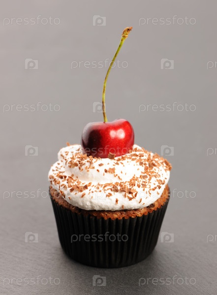 Кекс со взбитыми сливками и вишней