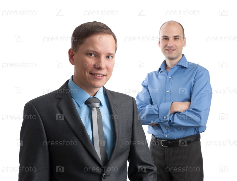 Два улыбающихся бизнесмена, изолированные на белом фоне