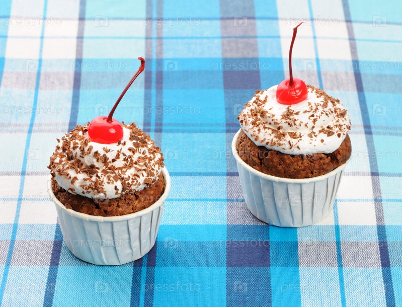 Кексы со взбитыми сливками и вишней