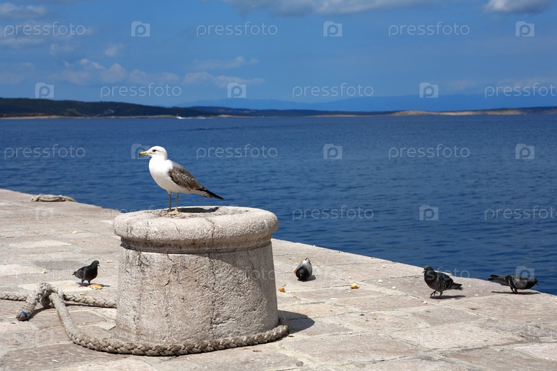 Чайка на причале возле моря