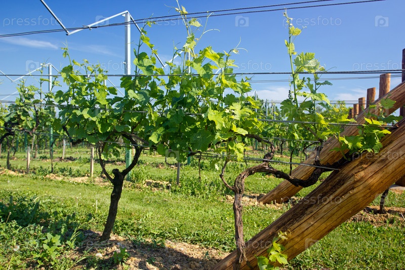Молодые виноградные кусты в винограднике
