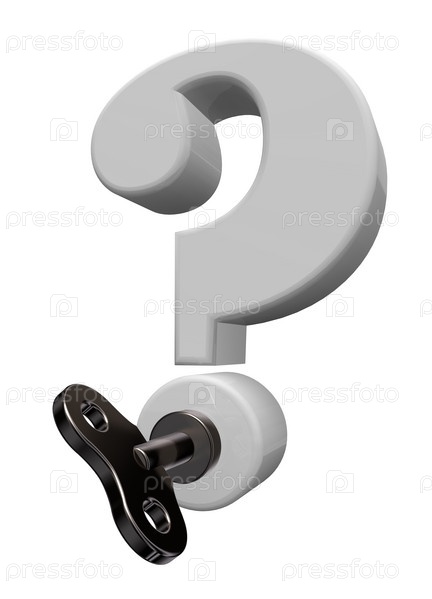 Вопросительный знак с ключом на белом фоне. 3d иллюстрация