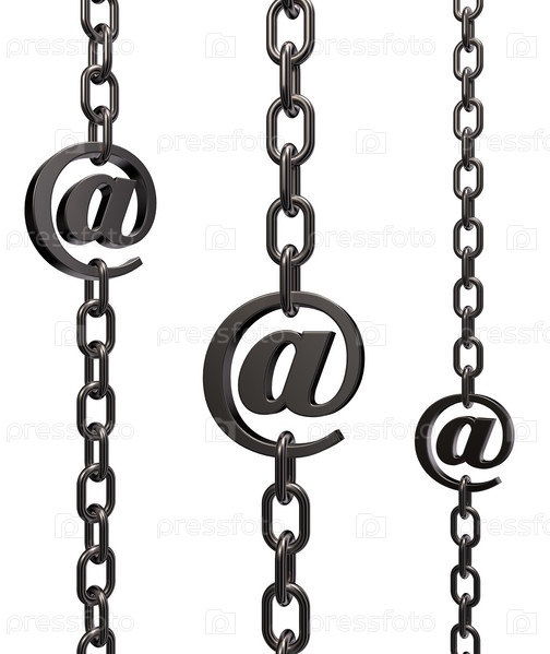 Металлические цепи с символом электронной почты - 3d иллюстрация