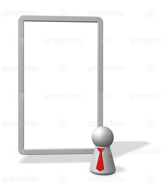Фигура с галстуком у пустого баннера - 3d иллюстрация