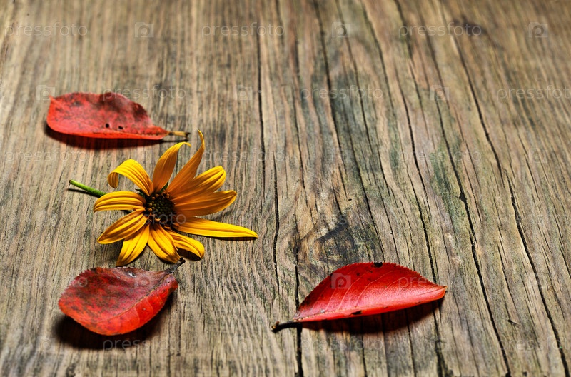 Осенние листья на деревянном фоне