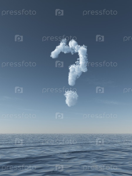 Облачный вопросительный знак в небе. 3D иллюстрация