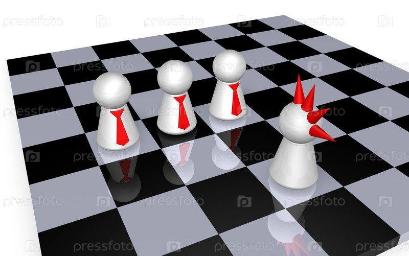 Панк и бизнесмены на шахматной доске - 3d иллюстрация