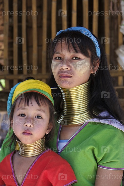Таиланд, Чианг Май, девочка с мамой из деревни Карен Хилл в традиционных костюмах