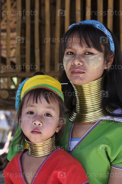 Таиланд, Чианг Май, девочка с мамой из деревни Карен Хилл в традиционных костюмах